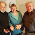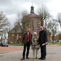 Metallgestalter Heiner Marten, seine Frau Susanne Drewniok und Pastor i.R. Ulrich Rincke stellen beim Kirchentag in Hamburg das Borbyer…
