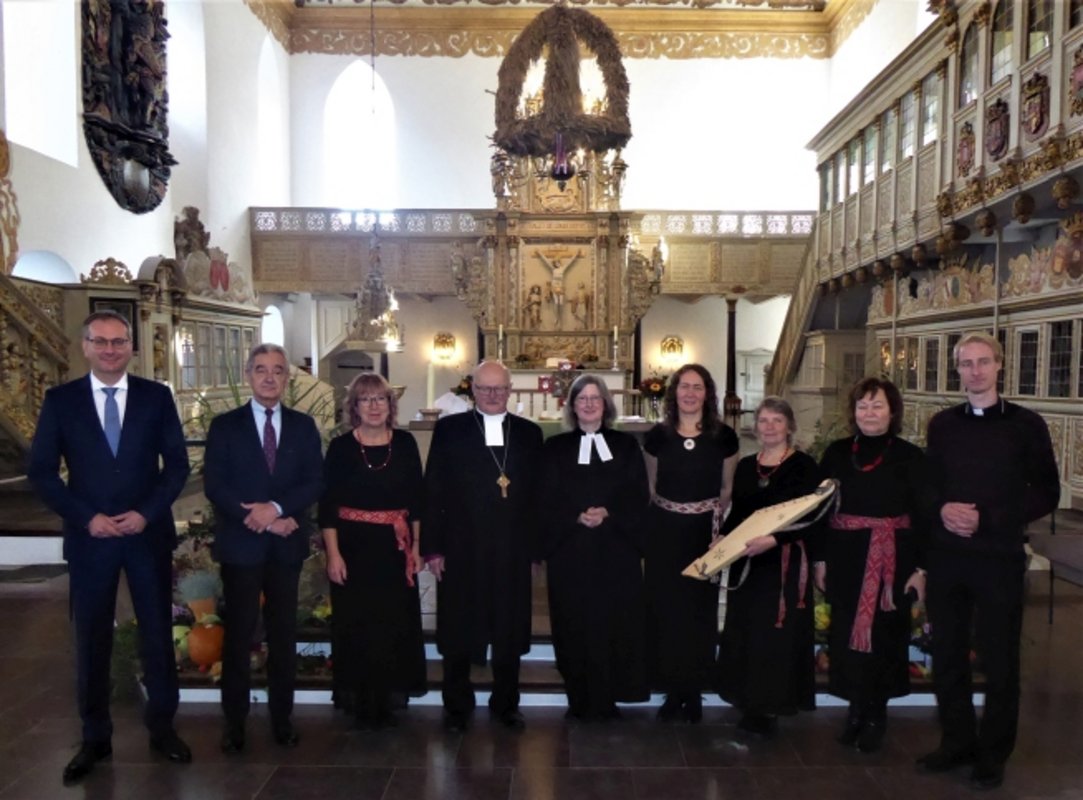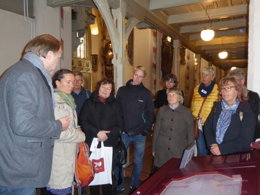 Die partnerschaftliche Verbindung zwischen der estnischen und den Rendsburger Kirchengemeinden gründet sich auf den miteinander geteilten Glauben; dieser wurde und wird an den jeweiligen Orten seit Jahrhunderten bezeugt und gelebt. Das führt auch die vor kurzem eröffnete Dauerausstellung in der St. Marien-Kirche vor Augen. Pastor Rainer Karstens erläuterte den Gästen am 5. Oktober den Aufbau und die Inhalte der verschiedenen Stationen und erinnerte damit auch an die gemeinsame Aufgabe, als Christen Glauben, Hoffnung tätige Liebe in der jeweiligen Zeit und je am eigenen Ort zu bezeugen und weiterzugeben.