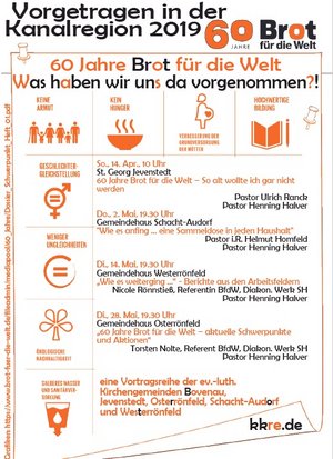 Rendsburg/Westerrönfeld/Osterrönfeld - In diesem Jahr begeht die evangelische Hilfsorganisation "Brot für die Welt" ihr 60-jähriges Bestehen. Das haben drei Kirchengemeinden zum Anlass genommen, gemeinsam mit der Ökumenischen Arbeitsstelle des Ev.-Luth. Kirchenkreises eine Vortragsreihe ins Leben zu rufen. Am Dienstag (14. Mai) berichtet Nicole Roennspiess, Referentin in der Arbeitsstelle "Brot für die Welt" im Diakonischen Werk Schleswig-Holstein, darüber, wie es in den 60er und 70er Jahren für die Hilfsorganisation lief und wie sich mit den neuen Herausforderungen auch "Brot für die Welt" weiterentwickelt und die Qualität der Hilfsmaßnahmen vorangebracht hat. Der Vortrag mit anschließender Aussprache findet im Ev. Gemeindehaus in Westerrönfeld ab 19.30 Uhr statt. Zwei Wochen später nimmt ein weiterer "Brot-für-die-Welt" Referent, nämlich Torsten Nolte, im Ev. Gemeindehaus Osterrönfeld die Zuhörenden mit hinein in die aktuellen Themen und Anforderungen an die Arbeit und an die Entwicklungsförderung in vielen Ländern der Erde. Dieser Vortragabend findet statt am Dienstag, den 28. Mai um 19.30 Uhr in der St.Michaelis-Gemeinde. Am 02. Mai hatte Pastor in Ruhe Helmut Homfeld in Schacht-Audorf von der ersten stadt-weiten Sammelaktion im Jahr 1961 in Kiel eindrucksvoll erzählt. Aus diesem Jahr stammt auch eine Briefmarke der Deutschen Bundespost; ein Teilnehmer des "Brot-für-die-Welt"-Abends hatte sie extra aus seinem Markenbestand mitgenommen, um sie unter anderem dem damaligen Brot-Aktiven Helmut Homfeld zeigen zu können.