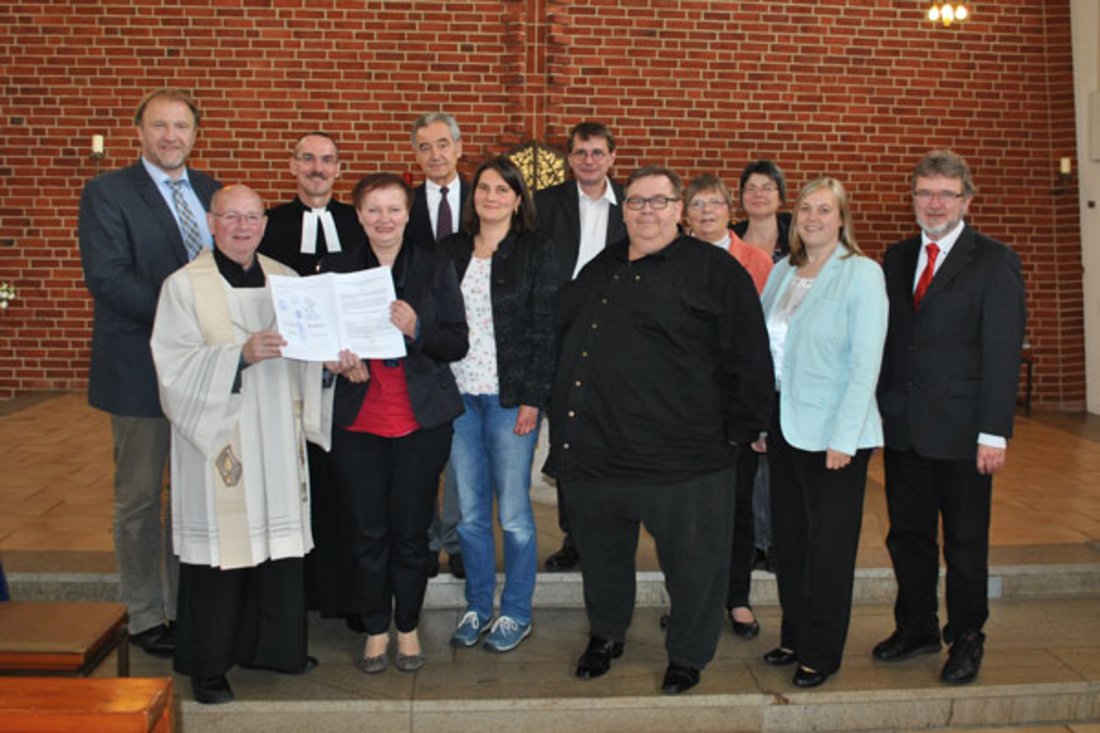 Rendsburg. Bereits seid 30 Jahren gestaltet der Ökumenische Arbeitskreis das Zusammenwirken der unterschiedlichen christlichen Gemeinden; zum Beispiel die Gottesdienste zum Rendsburger Herbst oder gemeinsame theologische Veranstaltungen. Zu den besonders Aktiven gehören neben anderen Pfarrer Manfred Beuke und Pastorin Dorothea Heiland. Sie waren auch beteiligt, als am vergangenen Freitag in der St. Michael-Kirche die Kooperationsurkunde zur Gründung einer regionalen Arbeitsgemeinschaft Christlicher Kirchen (ACK) unterzeichnet wurde. Eine römisch-katholische und vier evangelisch-lutherische Gemeinden gehören zu den Erstunterzeichnern, weitere Glaubensgemeinschaften sind eingeladen, sich diesem Konfessions-verbindenden Bündnis anzuschließen. In seiner Predigt begrüßte Propst Matthias Krüger diesen Schritt zu mehr Verbindlichkeit: „Als Christen mit je unseren Traditionen sind wir ja doch zusammen eingeladen, Hausgenossen Jesu Christ in dem einen Haus Gottes zu sein und miteinander fröhlich das Evangelium zu bezeugen.“
