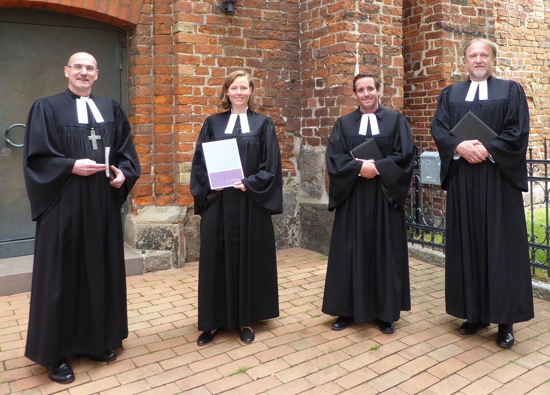 An diesem Sonntag Trinitatis kann man die Zahl drei aber noch aus anderen Perspektiven als wichtig betrachten: „Aller guten Dinge sind drei: Pastor Karstens, Pastor Rusch und neu: Pastorin Rahe-Dechant“, begrüßte Propst Matthias Krüger die neue Kollegin in den Reihen. „Schön, dass Sie da sind, mit Ihrem Mann Johannes sind das dann schon zwei. Und wenn wir die gute Hoffnung mit dazunehmen, auch wieder drei“, fuhr er fort und sorgte damit allenthalben für ein Schmunzeln. Denn die neue Pastorin wird im Herbst in Mutterschutz und anschließende Elternzeit gehen.