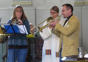 Dass alles nicht so ganz einfach ist mit dem Stellenwechsel von Frauke Bregas, hob Propst Funck in seiner Ansprache hervor. Sie gehe und bleibe, sie bleibt und geht. Eine komplexe Situation. Frauke Bregas war stellvertretende Vorsitzende des Kirchengemeinderats und habe mit ihrem Mann und vielen Ehrenamtlichen viel bewegt. Es sei ein gutes Miteinander in der Gemeinde entstanden. Die Pastorin habe Spuren hinterlassen. „Du hast in dieser Gemeinde, um es einmal eher landwirtschaftlich zu formulieren, gegrubbert und gepflügt, gesät und gedrillt, gedüngt und auch geerntet“, fasst Funck verbunden mit einem herzlichen Dank in Richtung von Frauke Bregas zusammen. Im Krankenhaus werde sie gut zu tun haben.