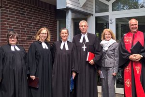 Am Sonntag wurde Pastorin Lorenzen in der Katharinenkirche in Bünsdorf offiziell in ihr Amt als Vertretungspastorin für die Region Schwansen/Hüttener Berge eingeführt. Lange hat sie den Kirchengemeinderat in Nortorf geleitet, und elf Jahre war sie Pastorin der Kirchengemeinde Nortorf und freut sich nun auf neue Herausforderungen und Aufgaben. Schon immer hatte sie Freude daran, Vertretungsdienste zu übernehmen. Bereits nach dem ersten Examen konnte sie ihre ersten Erfahrungen in Dänemark machen. Morgens predigte sie in Sonderborg, es folgten weitere Gottesdienste am gleichen Tag in Broacker, Gravenstein und anschließend in Ekensund und Kollund. „Das war eine gute Übung für mich“, sagt sie. Als im Laufe ihres Vikariats ihr Anleiter Jörn Engler ins Propstenamt wechselte, übernahm sie zusammen mit Regine Paschmann, die Pastorin im Ehrenamt war, einen Teil der Vertretungsaufgaben in der Kirchengemeinde Bünsdorf. Während der Wartezeit auf das zweite Examen gestaltete Pastorin Lorenzen zahlreiche Vertretungsgottesdienste und Amtshandlungen in Angeln. Begleitete wurde sie von dem jetzigen Landesbischof Gerhard Ulrich, der zu dieser Zeit Propst in Kappeln war. Sie predigte unter anderen in Sterup, Steinbergkirche, Ellenberg, Arnis, Rabenkirchen sowie in Gundelsby und Maasholm. So konnte sie viele Erfahrungen sammeln, was die Unterschiedlichkeit von Kirchengemeinden anbelangt. Pastorin Lorenzen hat schon immer Freude daran gehabt, sich frischen Wind um die Nase wehen lassen und freut sich auf die Vertretungsstelle für die Region Schwansen/Hüttener Berge. „Die berufliche Abwechslung, die mit einer „Springerstelle“ verbunden ist, finde ich reizvoll“, sagt sie.