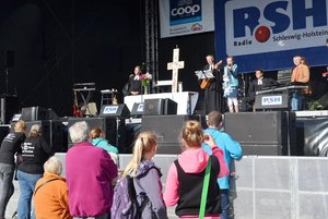 Kurz vor zehn läuteten die Glocken der Borbyer Kirche und von St. Nicolai, dann ging es um 10 Uhr auf der R.SH-Hauptbühne los. Die Kirchengemeinden St. Nicolai und Borby luden gemeinsam mit Propst Sönke Funck zum Familiengottesdienst und damit zu einem besinnlichen Start in den R.SH-Kindertag am vergangenen Sonntag ein.