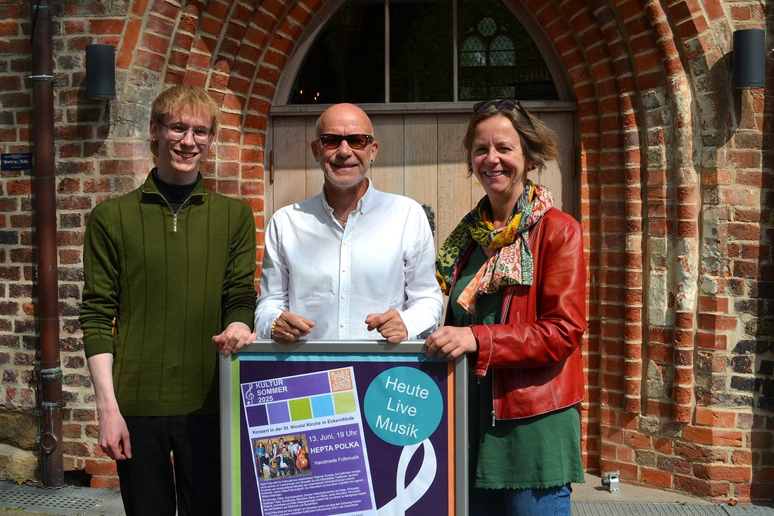 Eckernförde – Mit Folkmusik der Band „Hepta Polka“ startet die Kirchengemeinde St. Nicolai am Freitag, 13. Juni, um 19 Uhr in der St. Nicolai-Kirche in Eckernförde in den Kultursommer 2025. Zum vierten Mal findet diese Veranstaltungsreihe statt – in der Regel unter freiem Himmel auf dem Kirchplatz, bei schlechtem Wetter geht es in die Kirche. „Der Kirchplatz bietet sich für Konzerte wunderbar an, denn hier spielt die Akustik mit“, sagt Kirchenmusikdirektorin Katja Kanowski. Gemeinsam mit Anke Siemsen und Michael Koch, die mit zum Vorbereitungsteam gehören, lädt sie zu sechs Konzerten ein. „In diesem Jahr setzen wir auf den Schwerpunkt Jugend“, sagt Kanowski. Das Jugendorchester und der Oberstufenchor des Alten Gymnasiums Flensburg und der Mädchenchor von St. Nicolai treten gemeinsam am Freitag, 11. Juli, um 18 Uhr auf. Gesungen und gespielt wird Musik von Pop über Klassik bis hin zu Chansons. Die Preisträgerinnen und -träger von „Jugend musiziert“ sind am Freitag, 25. Juli, um 19 Uhr zu Gast.