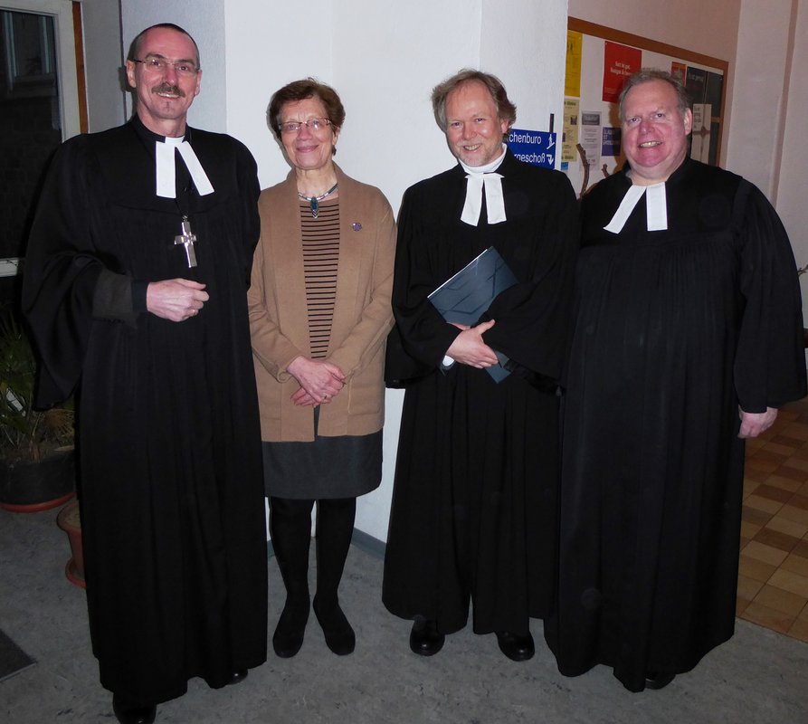Bereits am Sonntag wurde der neue Kirchengemeinderat eingeführt, nun also die Verabschiedung der scheidenden Mitglieder. Propst Matthias Krüger feierte diesen Gottesdienst mit der Gemeinde Hohenwestedt. Im Sommer 2016 war er noch zur Visitation in Hohenwestedt gewesen und erinnerte sich: „Von der Aufgabenfülle, die Sie bewältigt haben, konnte ich mir ein gutes Bild machen. Freundlich, kompetent und fleißig, beharrlich, wo es nötig ist, immer gewissenhaft und mit großem Verantwortungsbewusstsein, so habe ich Sie erlebt“. Diesem großen Engagement zollte Krüger Dank und Respekt und überreichte Renate Tank das Ansgarkreuz. Es sei ein Dankzeichen für Gemeindeglieder, die sich durch einen großen persönlichen Einsatz hervortun, die Kirche, ihre Werke und Einrichtungen vorbildlich fördern und beispielhaft für einen tätigen christlichen Glauben in der Öffentlichkeit eintreten, erklärte er. „Mit Ihrer vielfältigen Arbeit, liebe Frau Tank, haben Sie ein kräftiges Zeichen des Glaubens gesetzt, ehrenamtlicher Dienst zum Lobe Gottes und zur Ehre seines Namens und zu Nutz und Frommen der Gemeinde. Als Gemeinde Jesu Christi brauchen wir uns alle gegenseitig, ob wir nun haupt-, neben- oder ehrenamtlich in unserer Kirche tätig sind“, so Krüger.