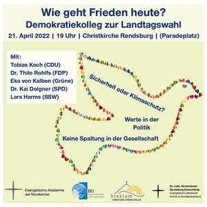 Rendsburg - Die Landtagswahl in Schleswig-Holstein steht kurz bevor. Im Kirchenkreis Rendsburg-Eckernförde wird deshalb das bekannte Format des Demokratiekollegs neu aufgelegt. Am 21.4. um 19 Uhr in der Christkirche treffen sich Kandidat*innen aller Parteien, die aktuell mit Fraktionsstärke im Landtag vertreten sind. Dieses Mal dabei sind: Tobias Koch (CDU), Dr. Thilo Rohlfs (FDP), Eka von Kalben (Grüne), Dr. Kai Dolgner (SPD) und Lars Harms (SSW).