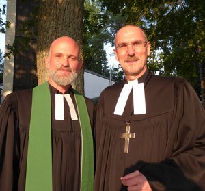 In seiner Predigt fragte Propst Krüger nach der Hauptsache: „Was gibt uns Halt im Leben und Sterben?“ Er findet zwei Antworten bei Jesus, nämlich Monotheismus und Humanität. „Humanität begründet sich aus christlicher Sicht mit der Ebenbildlichkeit Gottes. Das hat Konsequenzen. Im Umgang miteinander. Und der sollte von Respekt geprägt sein“, so Krüger. An Respekt fehle es bedauerlicherweise immer häufiger, obwohl er so wichtig sei. Letztlich habe er auch was mit Menschenwürde zu tun. „A little respect“ tönte kurz durch den Kirchraum. Auch Jesus ging stets respektvoll mit seinen Mitmenschen um, ohne Ansehen ihrer Fehler und Mängel, erinnerte Krüger die Gemeinde: „Wir müssen weitersagen und weiterleben, was wir gehört haben, was wir glauben, was uns trägt im Leben und im Sterben. Weitersagen von seinem liebevollen und respektvollen Umgang mit den Menschen“. Solcher Glaube öffne sich hin zur Welt, in der wir leben, öffne sich zur Nachbarschaft, zum Mitmenschen und suche gemeinsam des Dorfes und der Region Bestes, fuhr Krüger fort: „In diesem Sinne ist Kirche immer auch Kirche mit anderen und für andere, wenn sie denn wahrhaftig Kirche sein will“.