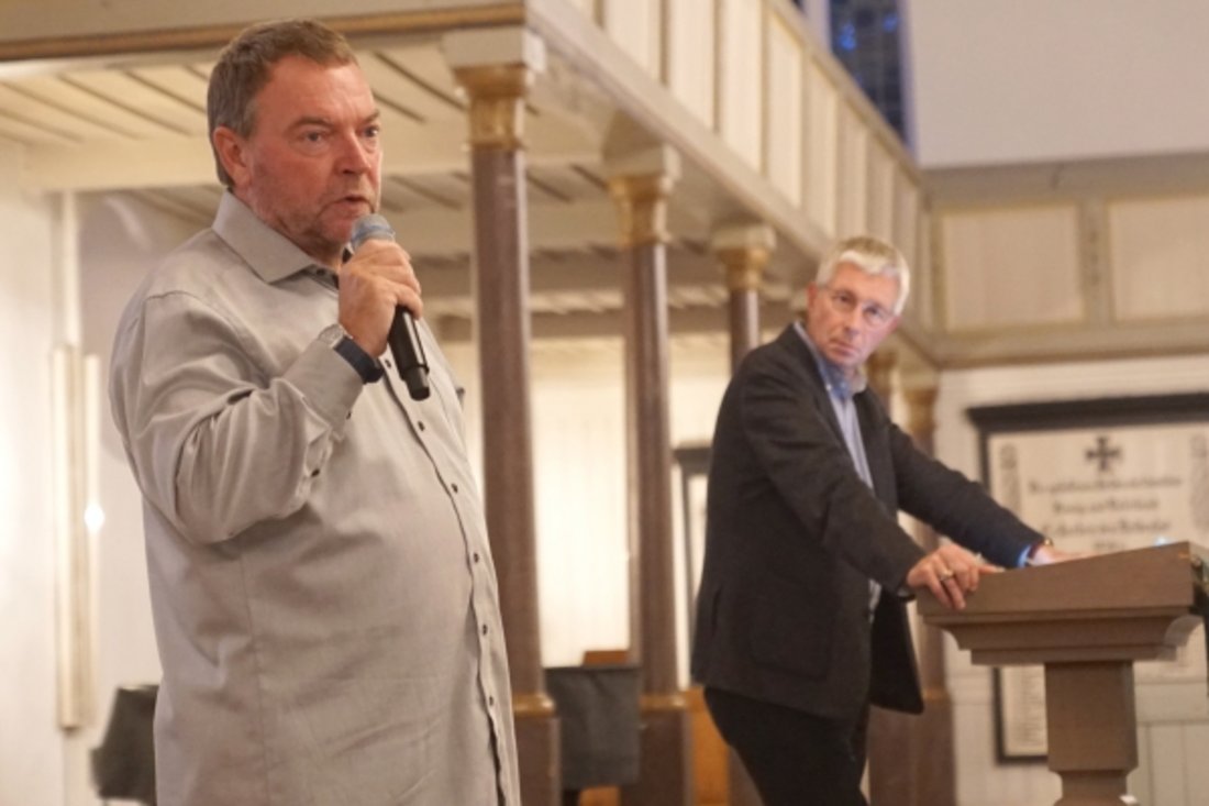 „Es geht darum, dass Menschen nicht ertrinken“, sagt Reisch. „Wir holen sie aus dem Wasser, bringen sie ans Land und dann können wir weiterreden. Zum Beispiel darüber, warum sich die Menschen auf den Weg machen.“ Für ihn ist die Seenotrettung der allerletzte Notnagel, bevor die Menschen sterben. Deswegen spricht er im zweiten Teil seines Vortrags in der Christkirche Rendsburg auch über Fluchtursachen. Propst Sönke Funck fasste es in der Einleitung zum Abend so zusammen: „Sie fragen auch nach den Ursachen und der politischen Dimension des täglichen stillen Dramas vor den Küsten Europas.“ Und Funck zitierte aus der Einleitung zu Reischs Buch „Das Meer der Tränen“, in dem Udo Lindenberg zwei Sorten von Menschen ausgemacht habe: Held oder Arschloch, dazwischen gebe es nicht mehr viel.