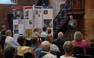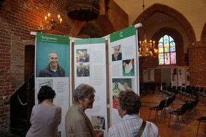Entsprechend eröffnete Propst Sönke Funck die #Religramme vor gut 50 Gästen am Mittwochabend mit einem großen Dank an das Ausstellungsteam, die Kirchengemeinde St. Nicolai, das Zentrum für Kirchliche Dienste im Kirchenkreis und insbesondere an Brigitte Gottuk: „Ich freue mich, dass es Ihnen gelungen ist, diese großartige Ausstellung in den Sommermonaten hier in die Nicolaikirche zu bekommen!“ Die physische Kühle einer Kirche tue gut in diesen heißen Tagen – und ein klarer Kopf sei nötig, auch im Mit- und Nebeneinander der Religionen: „Da könnte es nach meinem Dafürhalten gern etwas heruntergekühlter zugehen“, sagte Funck. „Die einen wenden sich ab, die anderen aber überhitzen, instrumentalisieren und missbrauchen ihre Religion.“ Gegen diese Überhitzung helfe nichts besser als Information, Wissen, Neugierde und Austausch. „Die Menschen, die hier von sich erzählen, zeigen ihr Gesicht in der Begegnung und im Dialog – und verstecken sich nicht hinter anonymen Verallgemeinerungen oder den virtuellen Echo- und Filterkammern der digitalen Welt.“