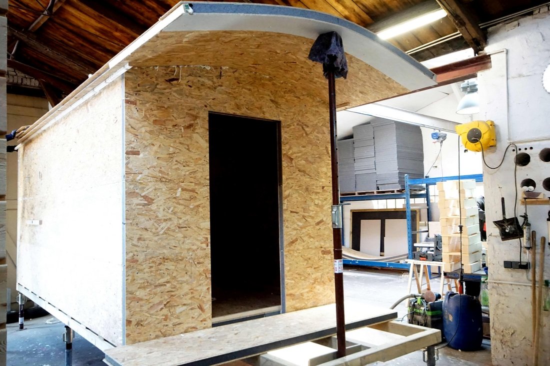 Eckernförde/Oersberg bei Kappeln – In der Werkstatt wird gehämmert und geklebt. Es riecht nach Holz. Gerade setzen die Mitarbeiter von Anton Kraack das letzte Dachelement auf den Schäferwagen. Einen solchen Wagen hat er mit seiner Schäferwagenmanufaktur in Oersberg bei Kappeln noch nicht gebaut. Denn dieser Schäferwagen wird die Schäferwagenkirche. Ab dem 12. Juni wird sie im Eckernförder Strand für Einheimische und Touristen offen stehen. Sie bietet ein Dach über dem Kopf, einen geschützten Raum – wenn es regnet oder ein Seelsorgegespräch es nötig macht. Oder Menschen einen Moment Stille suchen. Und hier kann Gottesdienst, kann Taufe gefeiert oder auch geheiratet werden.