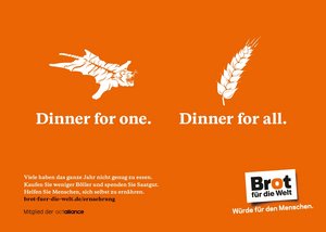 Die „Brot für die Welt“-Engagierten laden dazu ein, miteinander ins Gespräch zu kommen, und sammeln Spenden für die vielfältigen Unterstützungsprojekte dieser seit nunmehr 60 Jahren aktiven evangelischen Hilfsaktion; damit es nicht nur an Silvester, sondern jeden Tag weltweit zur guten Tradition wird: Statt Dinner for one - DINNER FOR ALL!