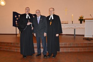 Propst Matthias Krüger überreichte Hagge das Ansgarkreuz. Propst Krüger betonte, wie wichtig nicht nur Hagge, sondern auch dessen im September 2015 verstorbene Frau für die Gruppe gewesen war. Sie sei die gute Seele der Gruppentreffen gewesen, die der kirchengemeindlichen Arbeit ein Gesicht gegeben und Hagge jederzeit mit ihrer warmherzigen und humorvollen Art zur Seite gestanden habe. Propst Krüger dankte Hagge abschließend im Namen der Evangelisch-Lutherischen Kirche in Norddeutschland für seine Mitarbeit.