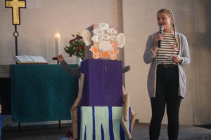 Kiel-Schilksee – Sechs Augen, viele Arme und vier ganz große Herzen – die Kinder der Evangelischen Kindertagesstätte Ankerplatz in Kiel Schilksee wissen, was ihre Erzieherinnen und Erzieher brauchen. Mit den Augen schauen sie hin oder auch mal weg, die Arme helfen jedem Kind und unterstützen es bei seinen Aufgaben und mit den Herzen sind sie immer nah bei ihnen. Vor der Feier zum 50-jährigen Jubiläum hatten die Kinder in der Kita Gelegenheit, die Anforderungen zusammenzustellen und beim Gottesdienst entstand dann das Idealbild an einem gebastelten Modell. Die Kinder klebten Augen, Ohren, Mund an die Pappkartons und mehr als einmal gab es großes wissendes Gelächter bei den Gästen.