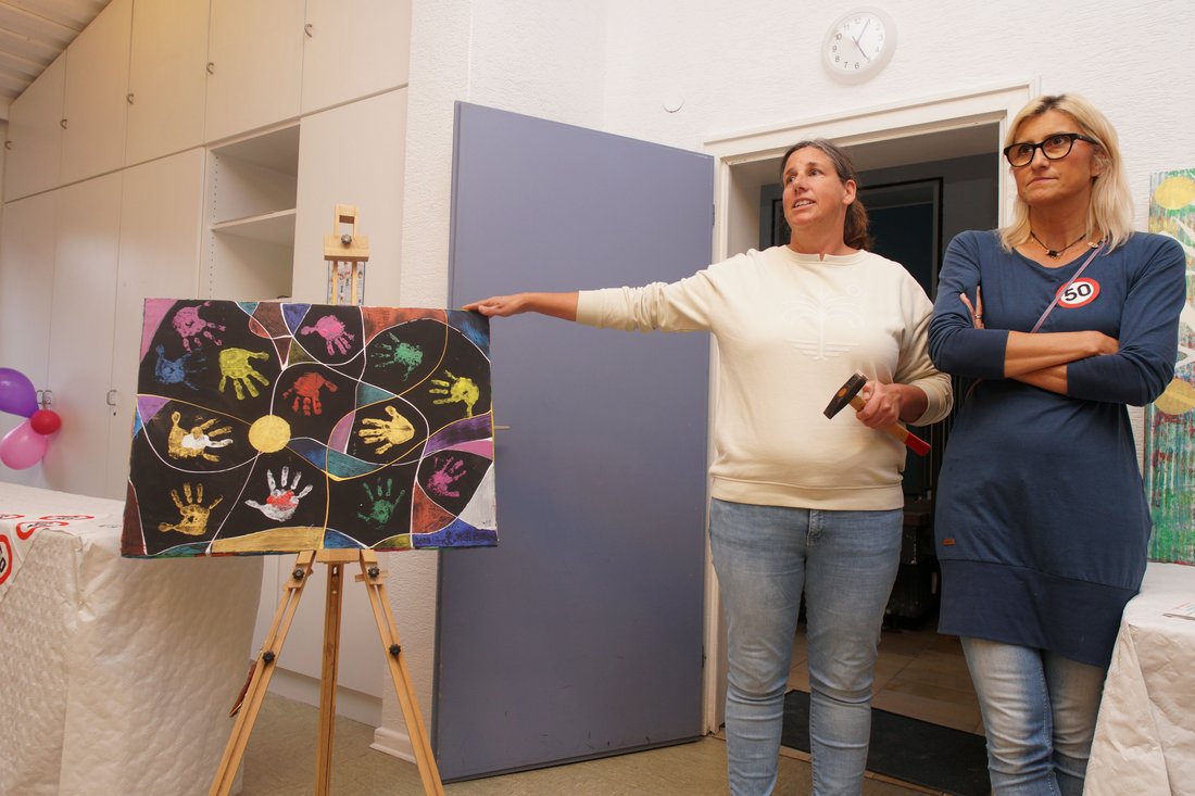Nach dem Gottesdienst füllte sich das Gemeindehaus neben der Kirche, es gab Kaffee und Kuchen und in der Kita selbst offene Türen, Popcorn und Waffeln. Bei einer Versteigerung konnten die Gäste die Bilder bewundern, die in einem Kunstprojekt in der Kita entstanden sind. Sie wurden für den guten Zweck – ein neues Häuschen auf dem Außengelände – versteigert. „Wir hatten ein wunderbares Fest“, fasst Kita-Leiterin Nahrstedt-Kauper den Nachmittag zusammen. „Ich danke allen, die daran beteiligt waren: meinem Team, den Eltern, der Kirchengemeinde und natürlich den Kindern.“