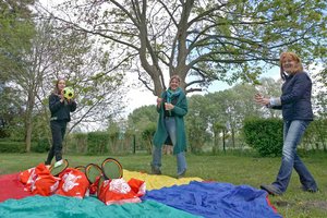 Rendsburg – 35 rote Stoffbeutel stehen bereit, um 35 mal Freude zu bereiten. Hinein kommen Dinge wie Straßenmalkreide, Bälle, Kescher, Springseile, Seifenblasensets, Liedtexte. „Wir verteilen Spielzeug und Anregungen für einfache Spiele draußen und drinnen“, sagt Sylvia Gerdes von der Evangelischen Familienbildungsstätte Rendsburg-Eckernförde (FBS). Gemeinsam mit Gabriele Lüttmer und Sara Marie Bubbers packen sie liebevoll die Beutel zum „Tag der Familie“. Der wird jährlich am 15. Mai gefeiert. „Die Päckchen sollen Familien aufmuntern, die wir sonst bei den offenen Angeboten hier in der FBS begrüßen – was wir durch die Corona-Krise jetzt nicht dürfen.“ Mit den derzeit viel genannten Rettungspaketen haben die roten Beutel natürlich wenig zu tun, lachen die Frauen. Aber vielleicht könnten sie dabei helfen, die eine oder andere schwere Stunde zu erleichtern und abwechslungsreich zu gestalten.