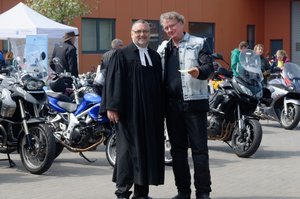 Büdelsdorf – Ein kurzes Stoßgebet, das sprechen viele. Besonders auch Motorradfahrer. Ein besonderes Stoßgebet, das mittlerweile weit verbreitete „Zündschlüsselgebet“, stellte deshalb Pastor Arend Engelkes (Kirchengemeinde Hademarschen) in den Mittelpunkt seiner Predigt beim Motorradgottesdienst (MoGo) in Büdelsdorf. Es lautet: „Ich sitze auf dem Motorrad und stecke den Schlüssel in das Zündschloss. Dann sitz ich still und besinne mich. Lass mich ruhig werden, Herr, und aufmerksam für Straße und Verkehr. Segne meine Lieben. Segne den Tag. Segne mich. Lass mich auf dem Motorrad sicher ans Ziel kommen, und bewahre mich. Amen.“