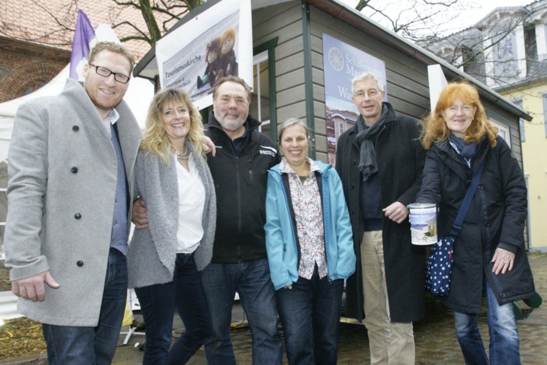 „Die Schäferwagenkirche soll in der Saison auf dem Strand stehen und Veranstaltungsort sein, aber auch Schutzraum“, sagt Tourismuspastorin Brigitte Gottuk. Ihr Blick fällt durch die Klönschnack-Tür nach draußen. Der obere Teil steht offen, dahinter zeigt sich die Stadt an diesem Tag in bestem Schmuddelwetter. Gottuk nickt. „Unser Programm auf dem Weihnachtsmarkt an diesem und am nächsten Wochenende zeigt ja, wie vielfältig sich ein solcher Ort nutzen lässt. Und nebenbei werben wir damit für die Schäferwagenkirche und finden Menschen, die uns mit ihrer Zeit oder ihrer Spende unterstützen.“ Unterstützt wird sie dabei von Gabriele Lüttmer, Fundraiserin im Kirchenkreis. „Wenn so viele Leute schon begeistert sind, bevor der Wagen überhaupt steht, wird meine Aufgabe fast zum Friendraising.“