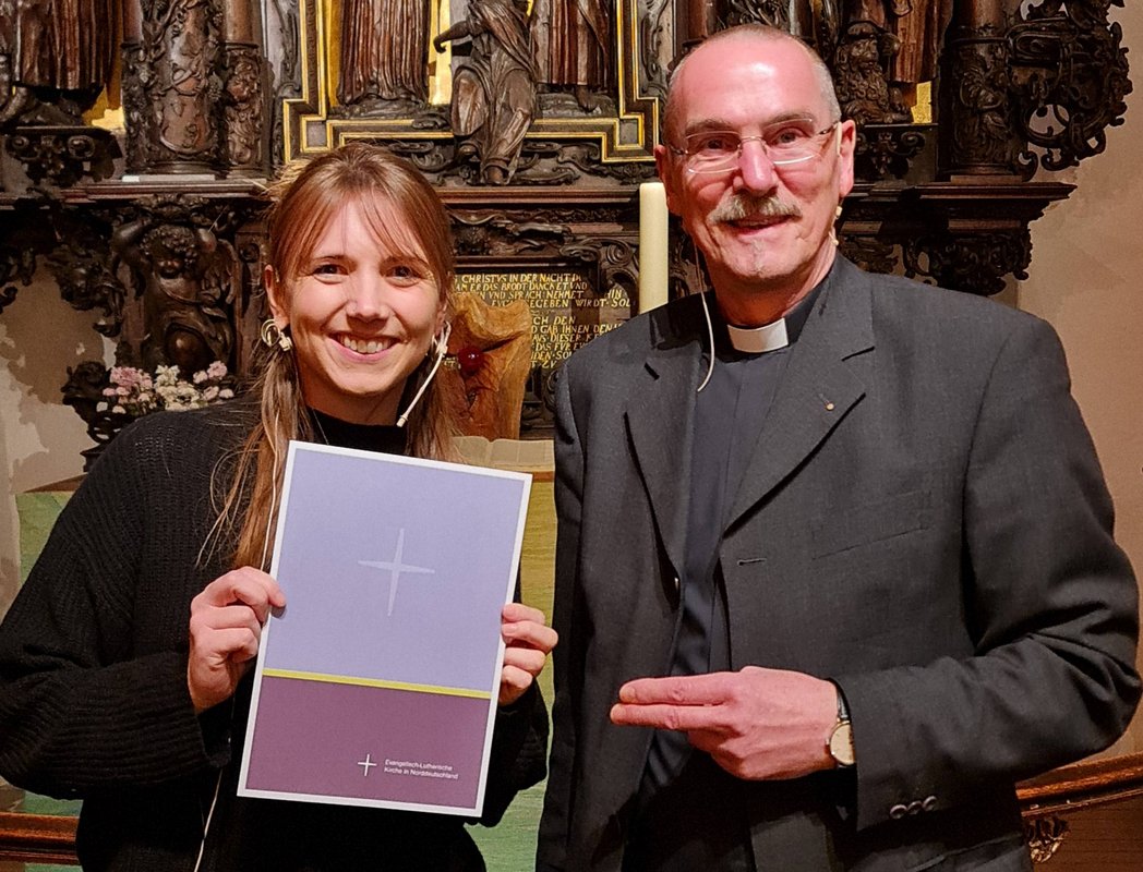 Eckernförde – Lea Strohfeldt und Eckernförde: Das passt. Die junge Pastorin bleibt nach ihrem dreijährigen Probedienst im Pfarrsprengel Eckernförde in der Stadt. Am vergangenen Sonntag ist sie von Propst Matthias Krüger offiziell in ihr Amt eingeführt worden. Nun ist sie Pastorin auf Lebenszeit und Inhaberin der Pfarrstelle, die sie in den vergangenen Jahren verwaltet hat. Beide Kirchengemeinderäte Borby und St. Nicolai freuen sich, dass Pastorin Strohfeldt in Eckernförde bleiben will, und haben sie einstimmig gewählt. Auch die Gemeinde freut sich, was auch durch die zahlreichen Besucherinnen und Besucher beim Einführungsgottesdienst in St. Nicolai sichtbar wurde, der ungezwungen als Wohnzimmerkirche gestaltet wurde.