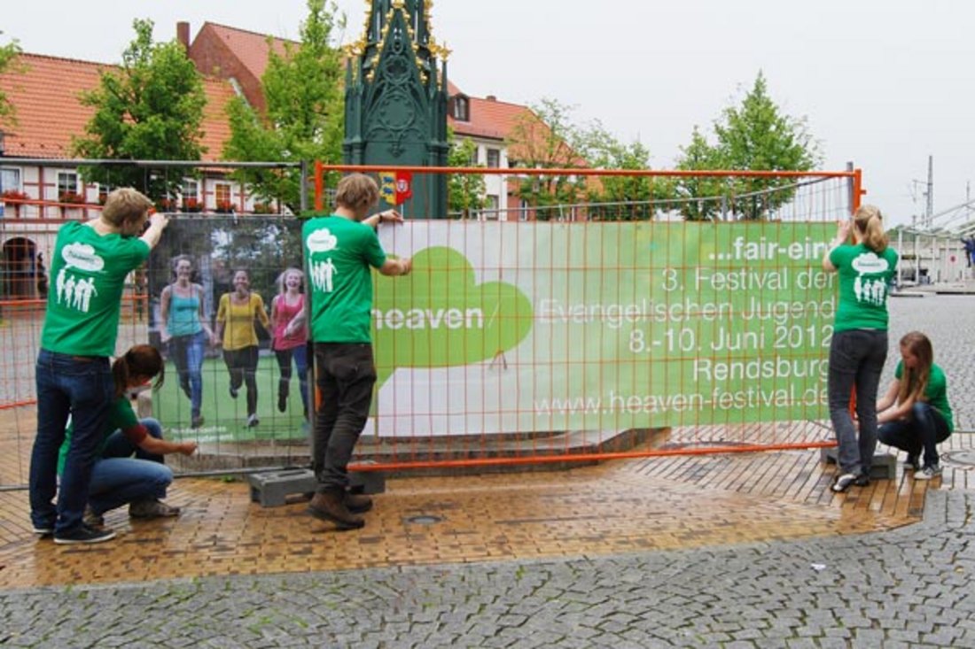 Zurzeit bauen rund 300 Teamer aus ganz Schleswig-Holstein Zelte, Bühnen und Infostände für das Festival auf. Das Fest beginnt am Freitag, 8. Juni, um 15 Uhr. Ab da sind alle Veranstaltungsorte in der Rendsburger Innenstadt wie Schiffbrückenplatz, Europaforum, Schloßplatz und Obereiderhafen geöffnet. Um 19.30 Uhr gibt es einen Eröffnungsgottesdienst unter dem Motto „fair-eint in Gemeinschaft“ auf dem Schiffbrückenplatz. Ab 22 Uhr lädt der Verband christlicher Pfadfinder am Obereiderhafen zu „Heaven on fire“ ein. Die Besucher erleben dort eine Feuershow, können Stockbrot backen und einen Lichtergarten besuchen. Am Freitag- und Samstagnachmittag können die Jugendlichen das Klimadorf auf dem Schiffbrückenplatz besuchen. Dort gibt es einen Klimalauf, der Weltladen Rendsburg präsentiert sich, das Wasserwerk H2 O Global informiert über Wasserverteilung und -verbrauch und Gäste aus Indien werden über den Klimawandel in ihrem Land berichten. Am Sonntag wird das Fest um 12 Uhr mit einem Gottesdienst ausklingen. Bischof Gerhard Ulrich wird predigen.