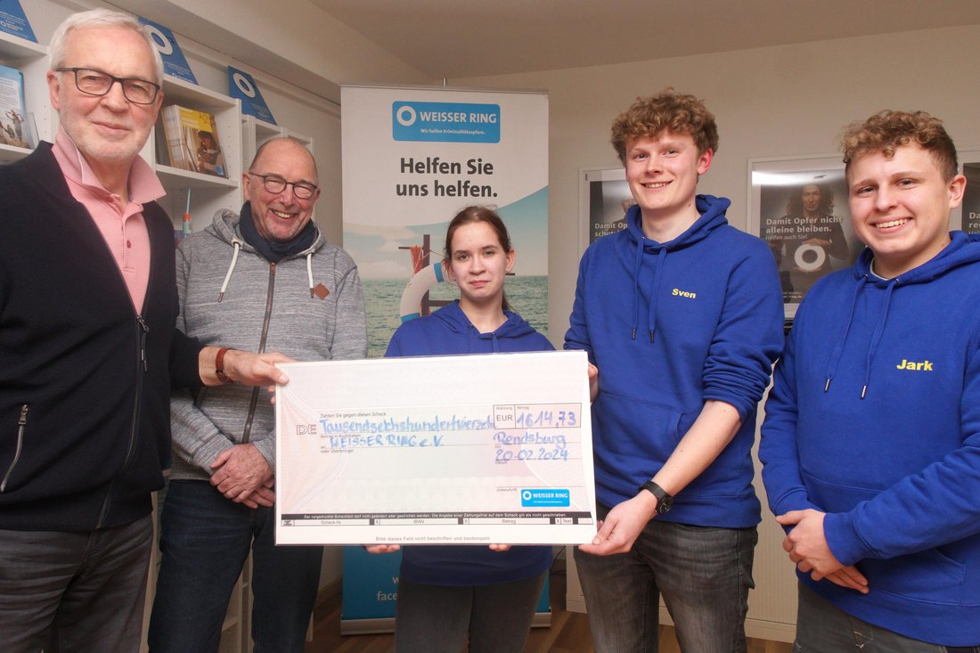Hanerau-Hademarschen/Rendsburg – So viel Geld haben die Jugendlichen noch nie gesammelt. Zumindest kann sich Jan-Niklas Feldhusen nicht daran erinnern, dass die Evangelische Jugend Hademarschen in den vergangenen Jahren einmal gut 1600 Euro für einen guten Zweck sammeln konnte. Das ist nun gelungen, jetzt hat er gemeinsam mit Jessica Henke und Jark Niemöller die Spende dem Weißen Ring in Rendsburg überbracht.