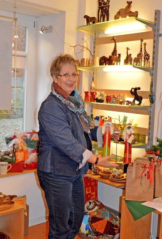 Hanni Delfs engagiert sich seit zehn Jahren für das Geschäft und ist begeistert von der Qualität der Produkte. Zu fast jedem Artikel kann sie eine Geschichte über die Herkunft und dem dahinter stehenden sozialen Projekt erzählen. Begeistert ist sie beispielswiese von der Weihnachtsdekoration aus Bogotá (Kolumbien). Diese wird von der Werkstatt Oxidos aus Altmetall gefertigt. Die Angestellten dieser sozialen Einrichtung erhalten neben Lohn, Krankenversicherung und Rente auch eine Beteiligung am Gesamtgewinn.