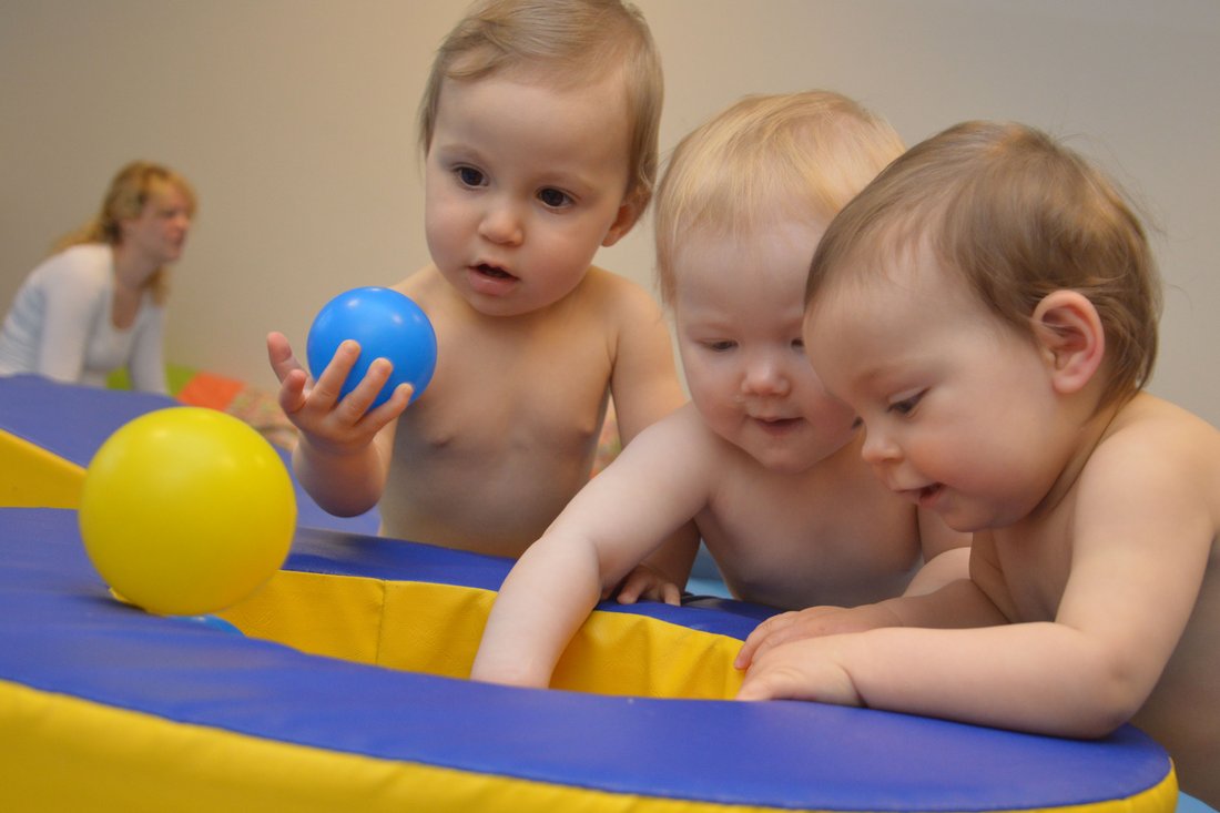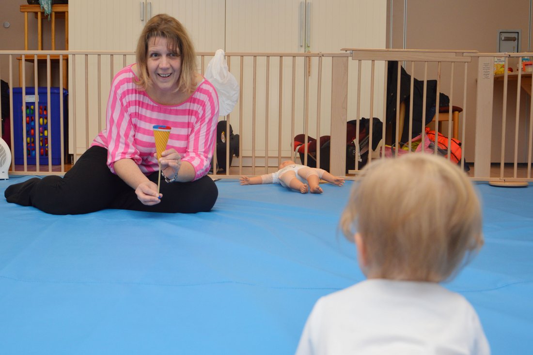 Neugierig sind sie, die vier Babys, die auf blauen Matten krabbelnd im DELFI-Raum der Evangelischen Familienbildungsstätte Rendsburg-Eckernförde (FBS) ihre Umgebung erkunden. Da ein paar Stäbe zum Festhalten, hier ein paar Bälle zum Anfassen, in der Mitte Spielzeug zum Klettern: Mittendrin sitzt Sylvia Gerdes, DELFI-Kursleiterin.