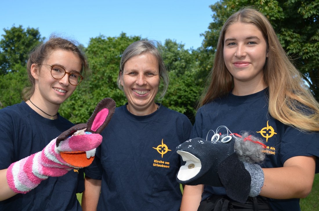 Vor Ort helfen ihr Teamer, die sie über den Gemeindedienst der Nordkirche oder durch Kontakte im Kirchenkreis gefunden hat. In Surendorf werden sie Sophie Kleinlein (16) und Chiara Anders (15) unterstützen. „Wir freuen uns darauf, neue Erfahrungen zu sammeln“, sagt Sophie Kleinlein. Da beide als Teamerinnen bei Konficamps und anderen Jugendveranstaltungen schon mitgewirkt haben, bringen sie solides Vorwissen mit. Chiara Anders freut sich darauf, mit verschiedenen Menschen ins Gespräch zu kommen. Zurzeit üben die beiden Teamerinnen schon einmal das Handpuppenspiel. Denn zu den allabendlichen Gute-Nacht-Geschichten gehört immer ein Auftritt der beliebten Sockenpuppen.
