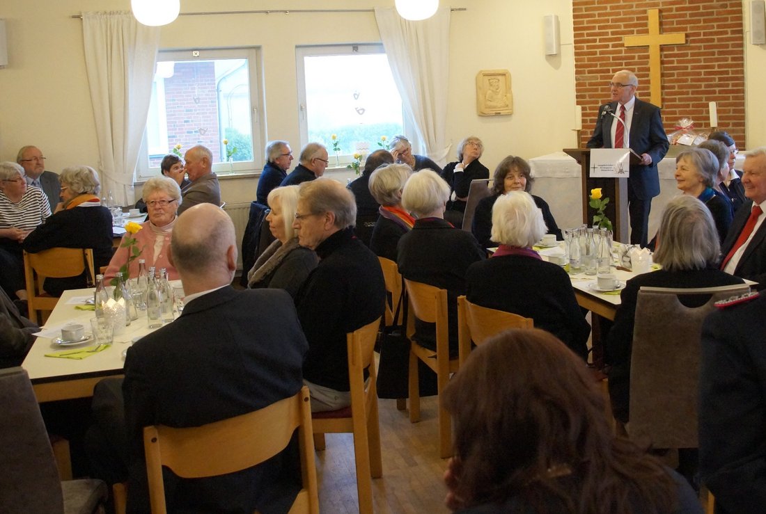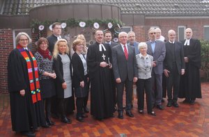 Die Gemeinde selbst sang in dem Gottesdienst Lieder aus den vergangenen 50 Jahren und dann sprachen die ehemaligen Pastoren mit Pastor Zimmermann-Stock die Fürbitten und Propst Krüger entließ die Gemeinde mit dem Segen. Danach versammelte sich alle im Gemeindehaus, wo - nach einer Rede des Kirchgemeinderatsvorsitzenden Burkhard Herrenkind - auf das Wohl der Gemeinde angestoßen wurde. Zunächst hielt dann der KGR-Vorsitzende der Kirchengemeinde Rendsburg-Neuwerk, als Vertreter der "Mutterkirche" eine Rede, dann folgten Pastoren der Region und der stellvertretende Bürgermeister Westerrönfelds Jürgen Heinz. Dann kam das große Kuchenbuffet mit einem musikalisch Leckerbissen, dem Vier-Stimmigen Ehemaligen-Chor mit PastorInnen, Frau Schierenberg und der ehemaligen Kirchenmusikerin Wiltrud Endriß. "Ein toller Auftakt für das Jahr, in dem die Kirchengemeinde ihr 50-jähriges Bestehen feiern wird", fast Pastor Zimmermann-Stock zusammen.