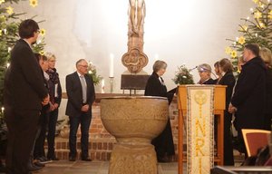 Der Gottesdienst zur Gründung der neuen Gemeinde steht dabei noch ganz im Zeichen des Weihnachtsfestes. Zwei Tannenbäume im Chorraum und der leuchtende Stern sind sichtbares Zeichen für die Weihnachts- und die beginnende Epiphaniaszeit. Und das Licht ist auch Thema des Gottesdienstes, der sich die Tageslosung zum Motto nimmt: „Gott, lass leuchten über uns das Licht Deines Antlitzes.“ Ein Licht, das auch auf die neue Gemeinde scheinen möge, so der Schleswiger Bischof Gothart Magaard in seiner Predigt. Das Licht scheine durch die Weihnachtsbotschaft und erzählt von der Gegenwart Gottes unter den Menschen.