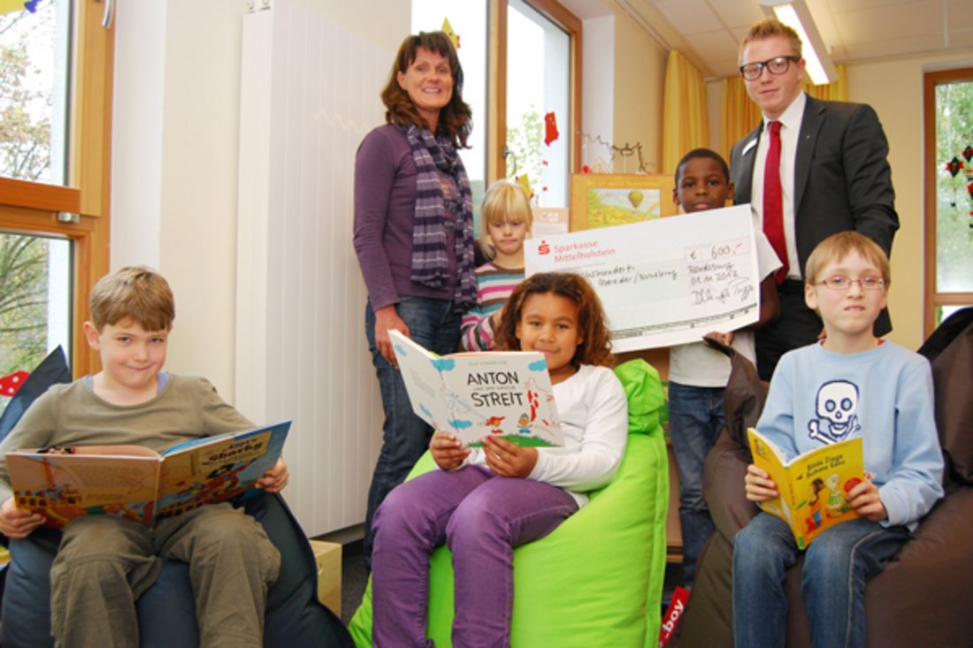 Den Wunsch gab es schon lange. Jetzt ist er Wirklichkeit geworden. Dank einer Spende der Sparkasse Mittelholstein konnte das Team der Offenen Ganztagsschule der Diakonie an der Schule Obereider eine Leseecke einrichten.
