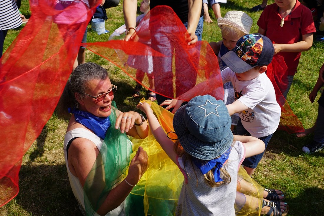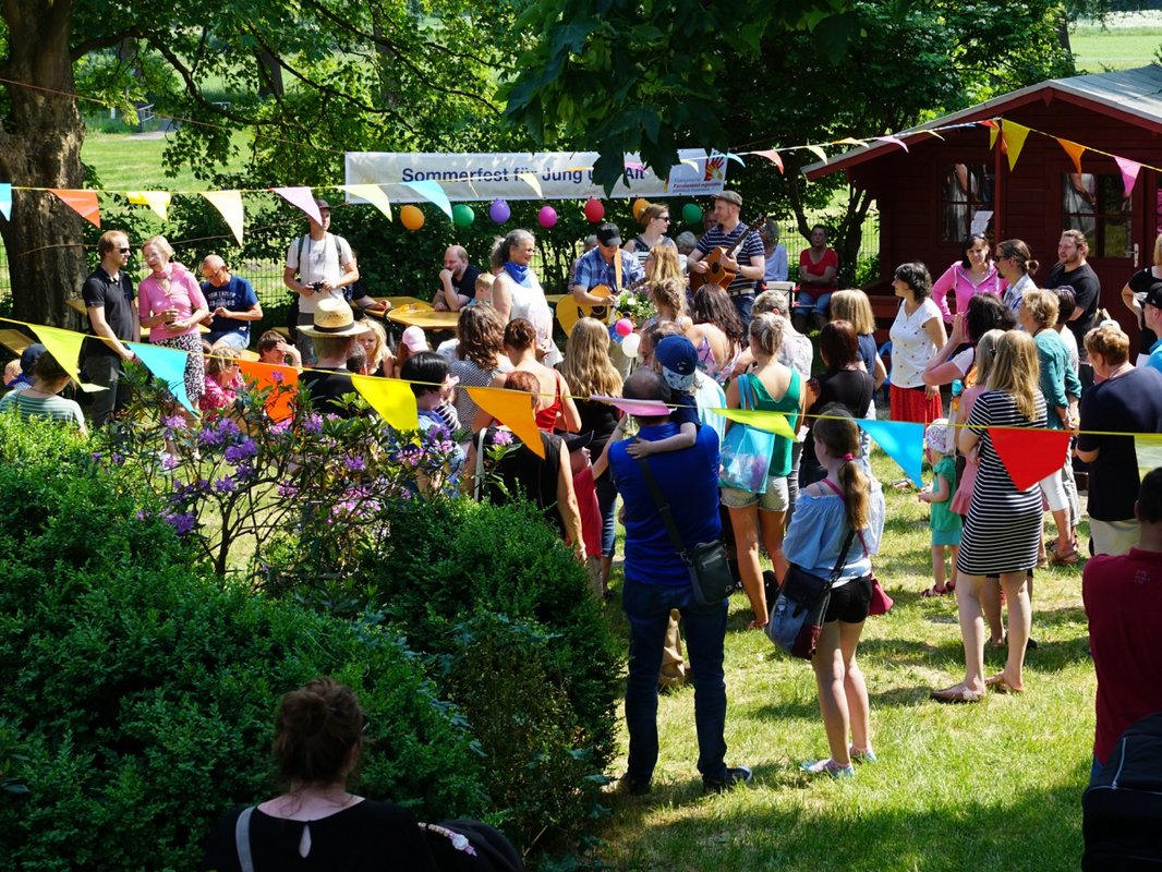 Rendsburg – So viele Gäste gab es lange nicht mehr beim Sommerfest der Evangelischen Familienbildungsstätte (FBS) Rendsburg-Eckernförde. Im Garten der FBS in Rendsburg tummelten sich am vergangenen Freitag (1. Juni) rund 500 kleine und große Besucher, genossen das sonnige Wetter und die vielen Spiel- und Unterhaltungsangebote. Das Diakonische Werk des Kirchenkreises Rendsburg-Eckernförde und das Familienzentrum Nobiskrug luden zum Kinderschminken ein, der Kinderschutzbund Rendsburg war mit dem Glücksrad angereist und die Evangelische Kita St. Jürgen hatte mehrere Bastelangebote vorbereitet. Außerdem konnten bei den FBS-Kursleiterinnen Telse Polenski und Anahita Scherenschnittfiguren aus Tonpapier angefertigt werden. Syrische und marokkanische Frauen bemalten Kinderhände mit Henna und der Fachbereich Integration der Stadt Rendsburg bot Stockbrotbacken an. Zum Abschluss lud die Frauenarbeit des Kirchenkreises mit Referentin Sabine Klüh zu einer Gute-Nacht-Geschichte ein.