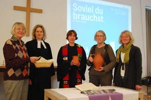 Mit 100.000 Menschen gemeinsam den Schlussgottesdienst beim Kirchentag in Hamburg feiern: Das ist ein Erlebnis. Aber noch schöner ist es, selbst mitzuwirken. Therese Heinen, Barbara Dittrich und Pastorin Peggy Kersten aus Waabs sowie Annekatrin Clausen und Pastorin Heidi Kell aus Rendsburg sind als Helfer am Sonntag, 5. Mai, mit dabei. Insgesamt 96 Pastorinnen und Pastoren und 1500 Helferinnen und Helfer werden bei dem Großereignis im Hamburger Stadtpark das Abendmahl austeilen und die Kollekte sammeln. Die Helferinnen aus Waabs und die beiden Pastorinnen aus Waabs und Rendsburg werden zum ersten Mal bei so einem großen Gottesdienst mitwirken. Die Vorfreude ist groß. „Ich freue mich auf das große Gemeinschaftsgefühl und die konzentrierte Stimmung“, sagt Pastorin Kersten. Während auf der Bühne der anglikanische Bischof Nicholas Baines, Landesbischof Gerhard Ulrich, Kirchentagspastor Joachim Lenz sowie Kirchentagspräsident Professor Dr. Gerhard Robbers den Gottesdient leiten, wird Pastorin Kersten gut sichtbar im Talar vor einem der 96 Altartische stehen. So wird der Open-Air-Gottesdienst von der Bühne auf die Festwiese zu den Menschen gebracht. Dank der vielen Helfer kann das Abendmahl so würdevoll gemeinsam mit allen gefeiert werden. Ohne Vorbereitung geht bei so einem Großereignis aber gar nichts. Deshalb informiert ein geschultes Kirchentagsteam die freiwilligen Helfer.