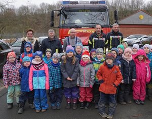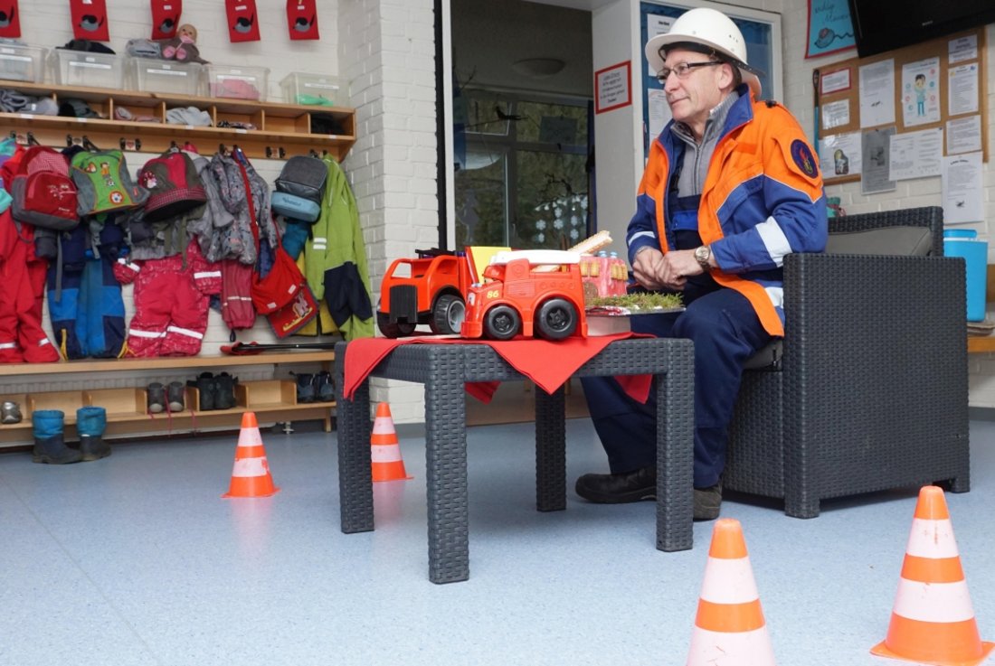 Reicher hat in der Kita, bei den Mitarbeitenden und den Kindern Spuren hinterlassen. Als Wehrführer, als Brandschutzbeauftragter und als Brandschutzerzieher. „Das war immer so liebevoll gestaltet und sehr lehrreich“, sagt Kita-Leiterin Angelika Blohm. Wenn Thomas Reicher in die Kita kam oder die Kinder ins Feuerwehrgerätehaus durften, dann hatten sie nicht nur Spaß sondern haben auch viel gelernt. Ob mit dem Übungstelefon, mit dem sie die 112 anrufen sollten, oder mit der Fluchthaube auf dem Kopf, die die Kinder möglicherweise im Ernstfall bei einem Brand aufsetzen müssen. „Die habe ich ihnen aufgesetzt, um die Angst zu nehmen“, erläutert Reicher. In der Kita werde regelmäßig die Evakuierung geprobt, außerdem würden die Kinder den Ton des Feuermelders kennen, so Angelika Blohm. Auch die Kameraden der Feuerwehr kennen die Kita von Übungen in den Räumlichkeiten.