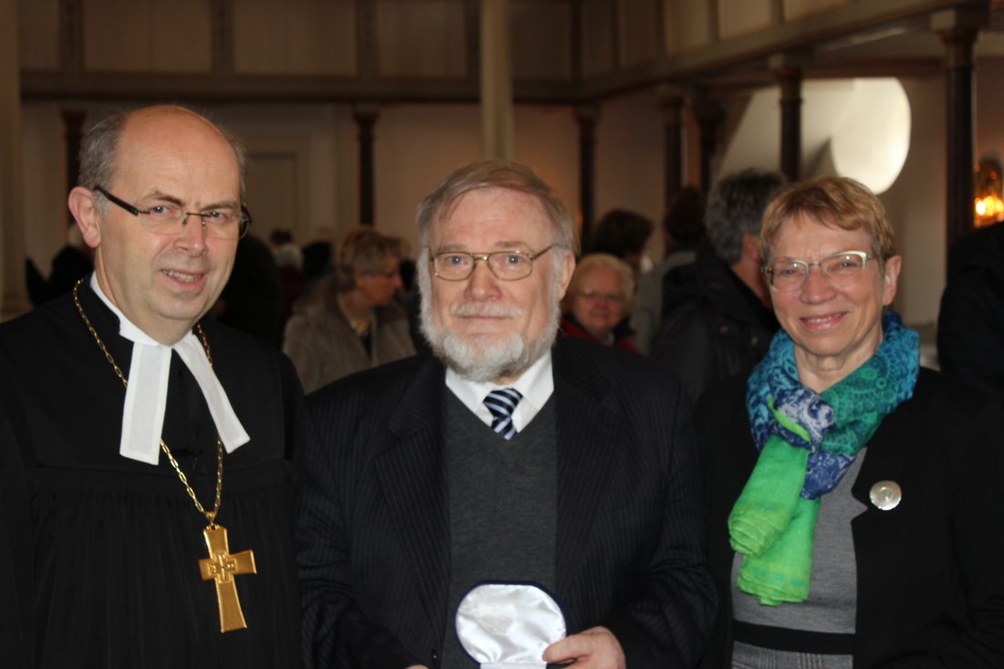 Der Pastor im Ruhestand Hans-Joachim Haeger (67) wurde am Sonntag, dem 28. Februar, mit der Bugenhagenmedaille geehrt. Der Vorschlag kam vom Diakonischen Werk Schleswig-Holstein, gewürdigt werden sollte der Einsatz Haegers als ehrenamtlicher Vorsitzender des Landesbeirats für den Vollzug der Abschiebungshaft in Schleswig-Holstein. Überreicht wurde die Medaille vom Bischof im Sprengel Schleswig und Holstein, Gothart Magaard.