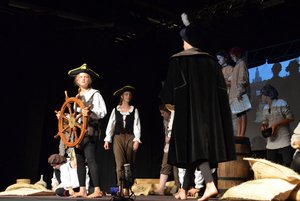 Zum zweiten Mal bot die Tourismuskirche Eckernförde ein Theaterprojekt an. „Es richtet sich immer an Urlauberkinder und an Einheimische“, sagte Tourismuspastorin Brigitte Gottuk. Mit dem Angebot möchte sie ältere Kinder und Jugendliche erreichen, die den anderen Veranstaltungen wie Gute-Nacht-Geschichte oder Strandspiele entwachsen sind. In diesem Jahr kamen die Kinder aus Bayern, Baden-Württemberg, Eckernförde und Umgebung. Auch ein Kind aus Spanien war unter den Teilnehmenden. Mit diesem Ensemble im Alter zwischen neun und 24 Jahren erarbeiteten die Theaterpädagogin Claudia Gottuk-Brede und die Schauspielerin und Theaterpädagogin Anja Beatrice Kaul das Stück „Das Abenteuer von Christoph Kolumbus“. „Wir haben den Rahmen für das Theaterstück gesteckt, die Kinder und Jugendlichen haben es mit Leben gefüllt“, berichtete Claudia Gottuk-Brede. Zunächst haben sich die Teilnehmenden mit der Geschichte und der Person von Kolumbus beschäftigt. Seine Zeit in Portugal, sein Interesse für Navigation und Astronomie, die Flucht mit seinem Sohn nach Spanien, die Suche nach Geldgebern für seine Expedition, die Ablehnung, seine Hartnäckigkeit, die Reise nach Amerika und die daraus resultierenden Folgen waren die Themen. Danach sind mit Hilfe von Stichworten die Dialoge entstanden.