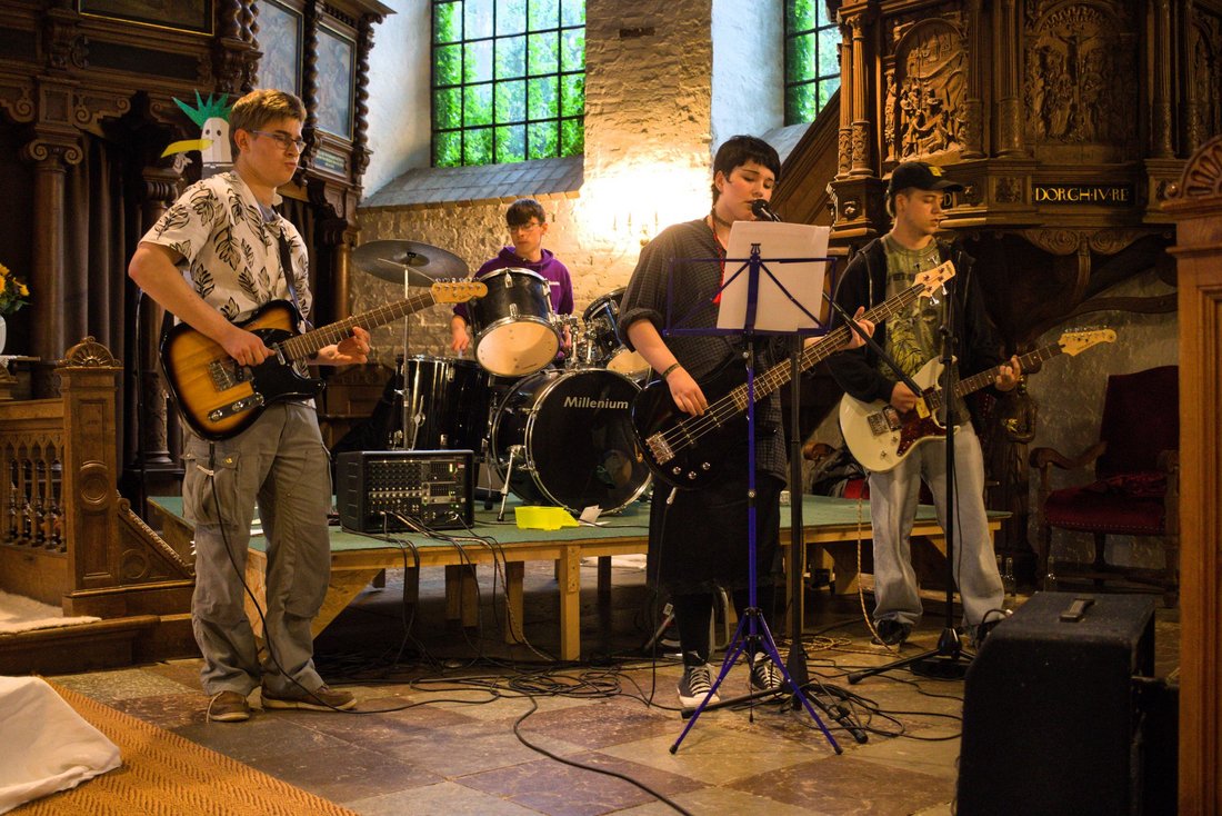 Musik spielt im Gemeindeleben aller drei Kirchengemeinden eine wichtige Rolle und so gab es auch musikalisches Programm. Nach dem wunderbaren Einstieg in den Nachmittag mit dem FoGoMo, gab es ganz in der Tradition der Pfadfinder eine spontane kleine Singerunde in der Jurte und ab 17.00 Uhr in der Kirche freies Singen mit Diakonin Antje Lorenzen und Reinhard Noeske. Zum Abschluss des rundum gelungenen Tages führte die Diakonin durch einen musikalischen Gottesdienst, welcher von Reinhard Noeske am Klavier und der Jugendband der Kirchengemeinde Hamdorf, die Mäwen, begleitet und mitgestaltet wurde.