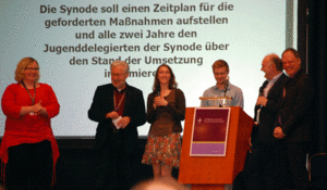 Aufgefordert wurde die Nordkirche, gesellschaftlicher Schrittmacher beim Klimaschutz zu werden. Neben einer Selbstverpflichtung, wurden 17 Forderungen an die Landessynode formuliert. Unter anderem die öffentliche Positionierung gegen Fracking, Kohle- und Atomstrom, Engagement in der Bildung für Nachhaltigkeit und mehr kreative Lösungen im Bereich von Beschaffung, in denen Vermeidung und Recycling Priorität haben sollen.