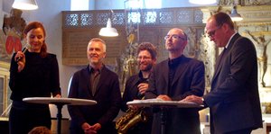 Die Uraufführung fand am Himmelfahrtstag in der Christkirche Rendsburg statt. Franke ist Professor für Komposition, Musik des 20. und 21. Jahrhunderts, Tonsatz und Analyse an der Leipziger Universität. In Kooperation mit den Nordkolleg Rendsburg stellte er die Musikreferentin Anne Kankainen mit den Akteuren vor. „Können Sie erraten, wer was gesagt hat?“ ist der Einstieg in das Werk für Männerchor und Saxofonquartett, das zum Kennenlernen gleich zwei Mal erklang. Zitate von Martin Luther und Martin Luther King Jr. werden gegenüber gestellt. Damit entstand eine Verbindung vom spätmittelalterlichen Theologen Martin Luther zum amerikanischen Pastor und Freiheitskämpfer sowie die Erkenntnis, „dass beide Gedanken formuliert haben, die bis heute aktuell sind“, so Pastor Dr. Stefan Holtmann. Beim ersten Hören wirkte das knapp 20-minütige Werk anfangs zwar noch neu. Man war jedoch gespannt auf Zusammenhänge und -klänge des Saxofon-Quartetts mit den Männerstimmen des Sonux-Ensembles aus Uetersen (Leitung: Hans-Joachim Lustig).