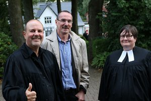 Mehr als 200 Menschen waren in der Dorfkirche der Gemeinde Wacken mit dabei. Das ehemalige Mitglied der Metal-Band Running Wild, der Kölner Pastor Gerald Warnecke predigte gemeinsam mit der Gemeindepastorin Petra Judith Schneider.