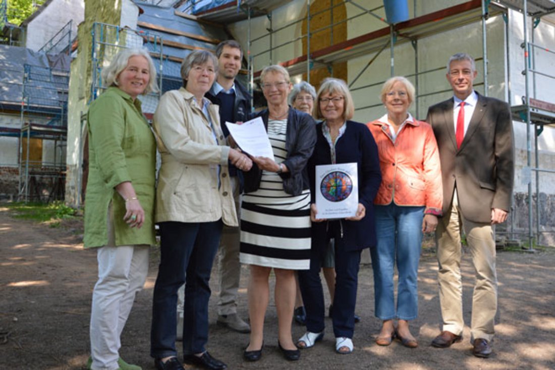 Kulturministerin unterstützt die Sanierung der Kirche in Sieseby und übergibt einen Förderbescheid in Höhe von Euro 95.100 stellvertretend für die Gemeinde an Pastorin Kirsten Erichsen.