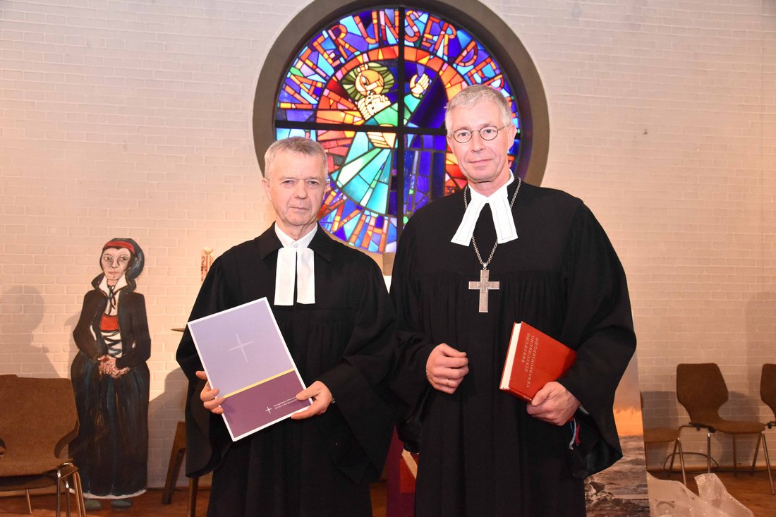 „Die Traurigkeit über das Ende, die wehmütigen Erinnerungen an all das Gute, dass mit Deinem Namen und Wirken in dieser Gemeinde verbunden ist, führen zu großer Dankbarkeit: Für Dein Wirken in dieser Gemeinde, für diese Gemeinde“, sagte Propst Sönke Funck bei der Verabschiedung. Mit „unendlich viel Fantasie und Kreativität“ habe Heik sein Amt ausgefüllt. Er sei überall als Pastor erkennbar gewesen. „Auf der Wiese, am Strand, im Stall, auf dem Friedhof oder Klettergerüst der Kita, verkleidet oder im feinen Zwirn“, sagte Funck. „Und das nun finde ich ein sehr passendes Bild und Zusammenfassung Deines Wirkens und Wesens, wie Du Dich als Pastor selbst verstanden hast: Schon überzeugt von Dir und selbstbewusst, pastoren-zentriert würden wir vielleicht sagen – aber nie zum Selbstzweck! Sondern immer auf Verbindung ausgerichtet und ausgelegt!“ Er habe zugehört, was die Menschen bewege. „Dazu bist Du hin gegangen, raus gegangen, zu ihnen gegangen. Bist den Menschen begegnet, wo sie waren, hast nicht hinter der Kirchentür auf sie gewartet. Hast sie damit immer auch überrascht und im guten Sinne herausgefordert zur Antwort, zur Reaktion.“