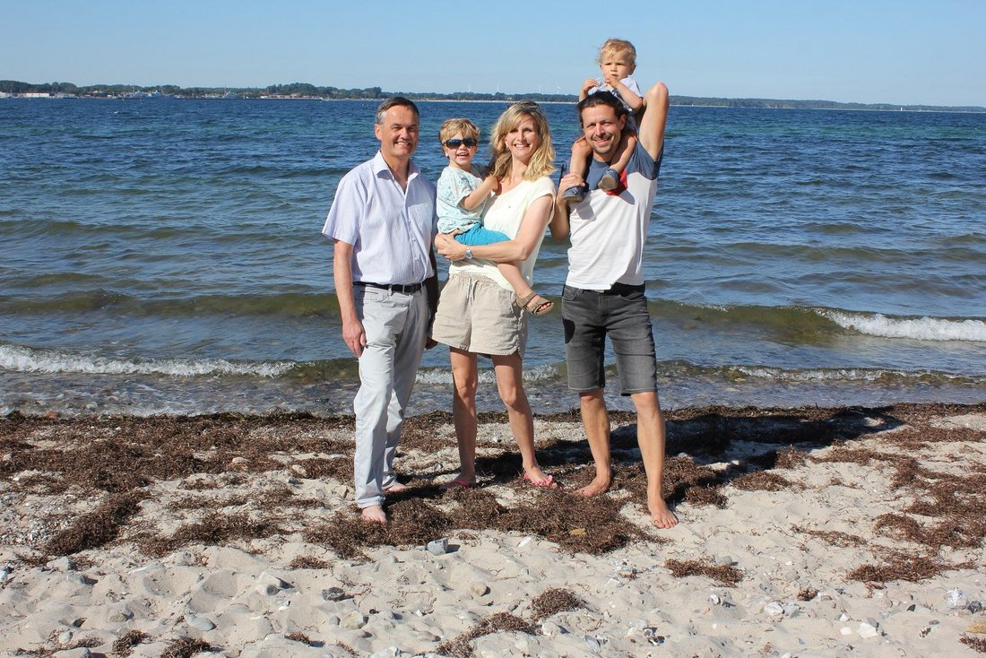 Das schöne Wetter lockt hunderte Menschen an den Eckernförder Südstrand. Unter ihnen Anna-Lisa und Nico Himmel mit zwei von ihren drei Söhnen. „Der Strand ist ein Wohlfühlort für uns“, sagt Anna-Lisa Himmel. Daher freuen sie sich, dass Caspar und Johan hier getauft werden. In gut einer Woche ist es soweit, jetzt schauen sie sich die Umgebung einmal an.