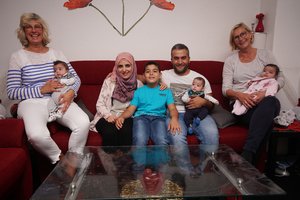 In Rendsburg und Umgebung sind zurzeit rund 20 „wellcome-Engel“ ehrenamtlich tätig. Sie gehen ein bis zwei Mal pro Woche in die Familien und entlasten die Eltern. Sie passen auf das Baby auf, kümmern sich um kleine Geschwisterkinder oder unterstützen beim Einkauf oder Besuch des Kinderarztes. Die Ehrenamtlichen bei Familie Talab/Jomma haben alle Hände voll zu tun. „Trösten, tragen, wickeln, beruhigen“ bringt Michaela Telemann ihren Job auf den Punkt. Und Hunger habe ja auch immer ein Kind. Familie Talab/Jomma ist ihre erste Familie, bei der sie im Einsatz ist. Michaela Behrens bringt schon viel Erfahrung mit. Zwei Drillingsfamilien hat sie bereits unterstützt in ihren 13 Jahren bei „wellcome“. Zusammen mit Leah Hamann kümmern sie sich nach Absprache mit der Familie um die Babys. Zurzeit sind sie viel in den Nachmittags- und Abendstunden da, wenn die Kinder unruhiger werden, der große Bruder Mouyad (12) aus der Schule zurück ist, Vater Khaled Jomma aber noch bei der Arbeit ist. Für beide Seiten, Ehrenamtliche und Familie, ist die Unterstützung wertvoll und bereichernd.