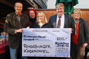 Der Großteil der Spendensumme kam im Rahmen eines Benefiz-Konzertes zusammen. Vier Bands des Vereins MusicPoint, Highlander, Mindbender, Cold Cure und no comment, gaben am 6. Oktober in der Rendsburger Nordmarkhalle ein Konzert für den guten Zweck. Außerdem stellte Jan-Peter Zander, der beruflich die HypoVereinsbank-Filiale in Büdelsdorf leitet, dort Spendengläser der Tafel auf. Insgesamt kamen so 820 Euro zusammen. Die Stadtwerke Rendsburg erhöhten den Betrag um 380 Euro, sodass eine Spendensumme von 1.200 Euro erreicht wurde.