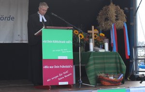 Einem verregneten Herbst, der die Koppeln überschwemmte und vielen das Pflügen und Säen unmöglich gemacht habe, sei nun ein Sommer gefolgt, den manche sicher als „groß“ bezeichnen würden, vielen Bauern hier aber enorme Probleme bereitete: „Wir denken heute auch besonders an die Familien in unseren landwirtschaftlichen Betrieben, die in diesem Jahr an die Grenzen ihrer Belastbarkeit gekommen sind – finanziell, aber auch an die Grenzen ihrer Kraft“, so Funck.