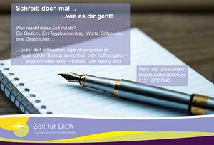 "In sich hineinhorchen, den Stift über das Papier oder die Finger über die Tastatur gleiten lassen und offen dafür sein, was entsteht", darum geht es der Pastorin. Einige Beiträge werden in der Eckernförder Zeitung veröffentlicht. "Wer keine Veröffentlichung möchte, schreibt bitte einen Vermerk, dass der Beitrag nicht veröffentlicht werden soll", sagt Brigitte Gottuk.