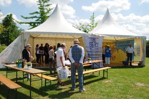 Im Anschluss kamen die Besucher zu einem gemeinsamen Mahl unter freiem Himmel zusammen. Rund 300 Pfadfinder verköstigten an weiß gedeckten Tischen 5.000 Gäste mit 10.000 Würsten, 500 Kilogramm Käse und 550 Kilogramm Erdbeeren.