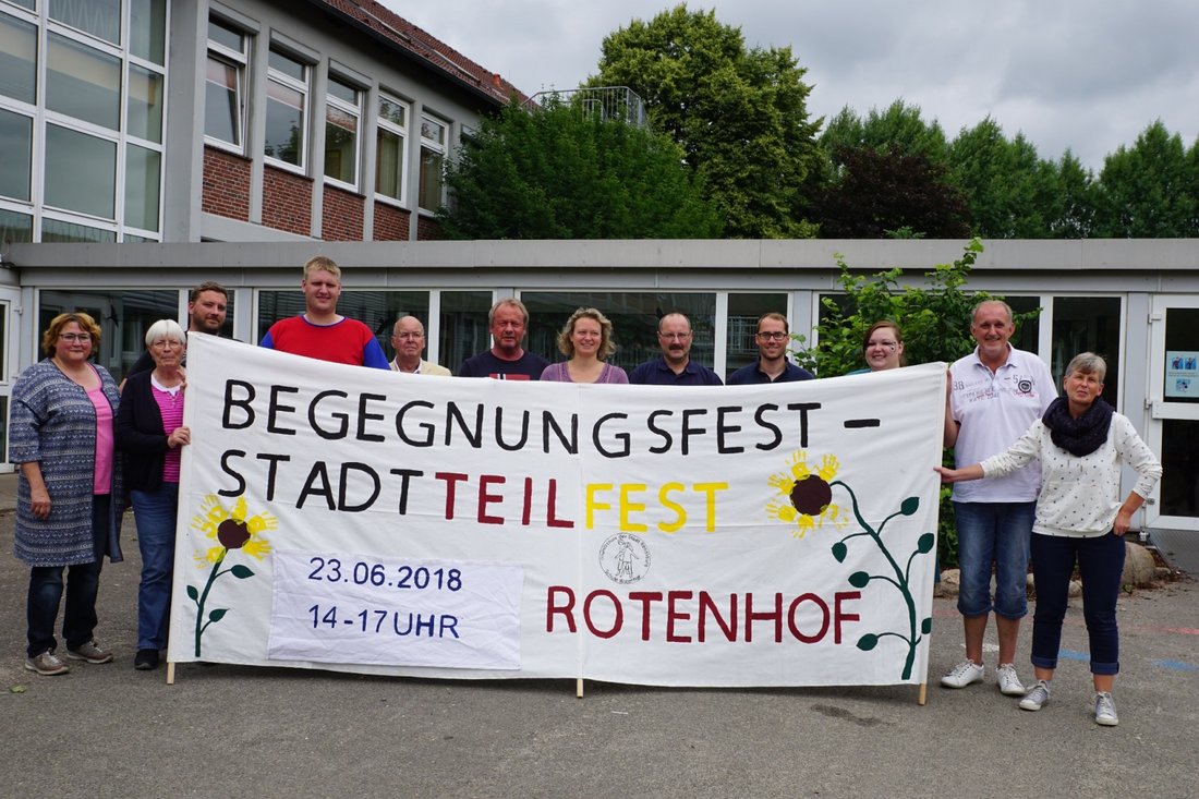 Das Begegnungsfest findet alle zwei Jahre statt und hat seit vielen Jahren Tradition. „Wir sind hier so eine Art soziale Meile“, sagt Martin Dierck, Leiter der Evangelischen Kita St. Jürgen. Schule, Kitas, Familienzentrum, Kirche: Alles befindet sich in unmittelbarer Nachbarschaft. „Ich finde es wunderbar, wie viele sich am Fest beteiligen“, so Dierck. Auch Diakonin Gundula Trampenau-Letas schätzt die gute Zusammenarbeit. „Wir wollen das hier gemeinsam machen“, sagt sie. Schulleiter Thomas Albert freut sich darauf, mit dem Fest die Kinder besonders in den Blick zu nehmen, denn seiner Auskunft nach würden in Rotenhof besonders viele Kinder leben. Deshalb können sich die Kleinen auf Wasserspiele von der Feuerwehr, Musik des Karnevalvereins und unzählige Spielangebote der vielen Mitveranstalter freuen. Für die Erwachsenen gibt es Kaffee und Kuchen und Zeit zum Klönen. Auch Grillwurst wird es geben. Dabei haben die Veranstalter auch muslimische Gäste im Blick: Ein Grill ist speziell für Halal-Fleisch reserviert.