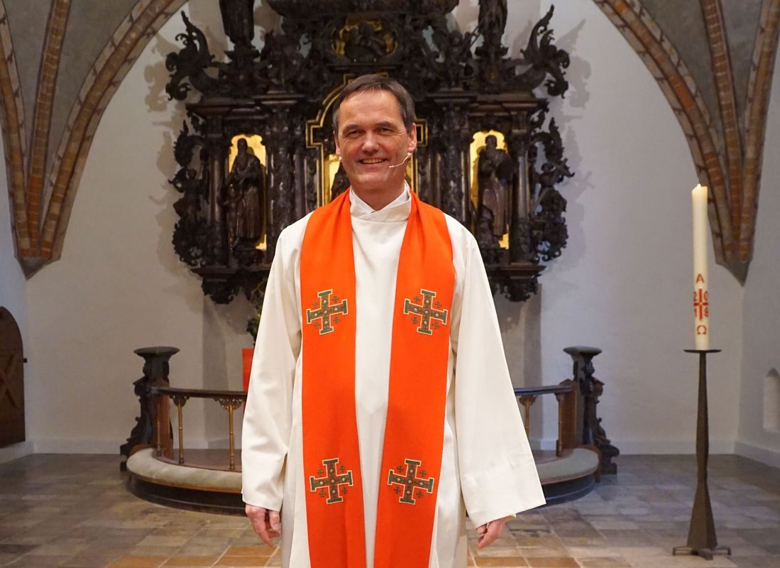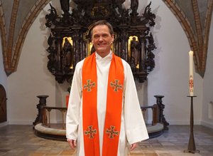 Nicht nur durch diese Aktion sei Jordan „für diese Gemeinde, die Stadt, die Kollegen und mich kein Unbekannter mehr, kein Neuer, keine Wundertüte, kein Überraschungsei“, so der Propst weiter. Erneute Lacher. Funck betonte aber auch Jordans sachlich-nüchterne und strukturierte Art, Dinge anzugehen, seine freundliche Offenheit und Kollegialität und ebenso die „theologische Tiefe, die Du ja nicht auf der Zunge vor Dir herträgst, die aber überall aufblitzt und durchscheint“.